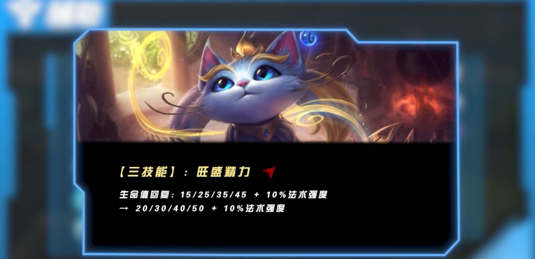 此外,悠米继上个版本的小Buff后,在3.4c版本又收获了一项不错的加强。E(3)技能每一次的回复都增加了5点,前期换血能力大大提升,各位召唤师们是时候叫上“猫爬架”来作战了!