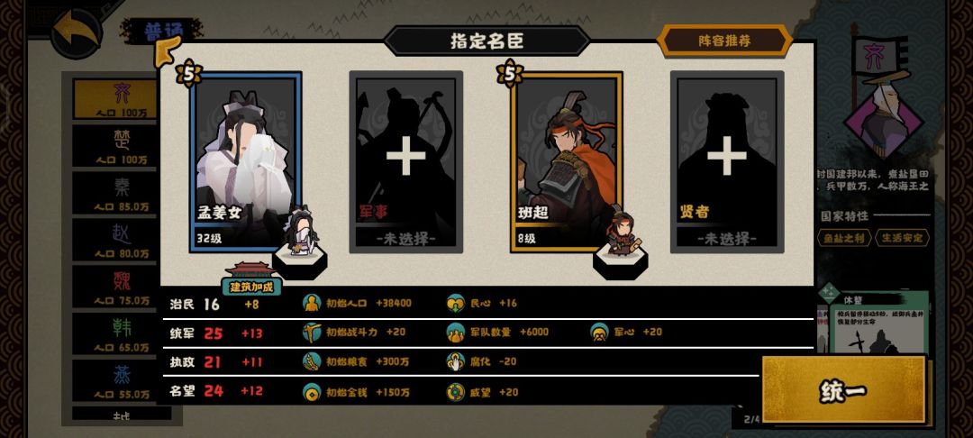 庄子则是循环增加战力和民心,一技能还能提供20%的战斗力