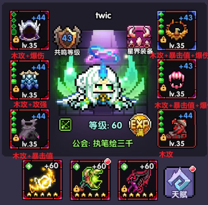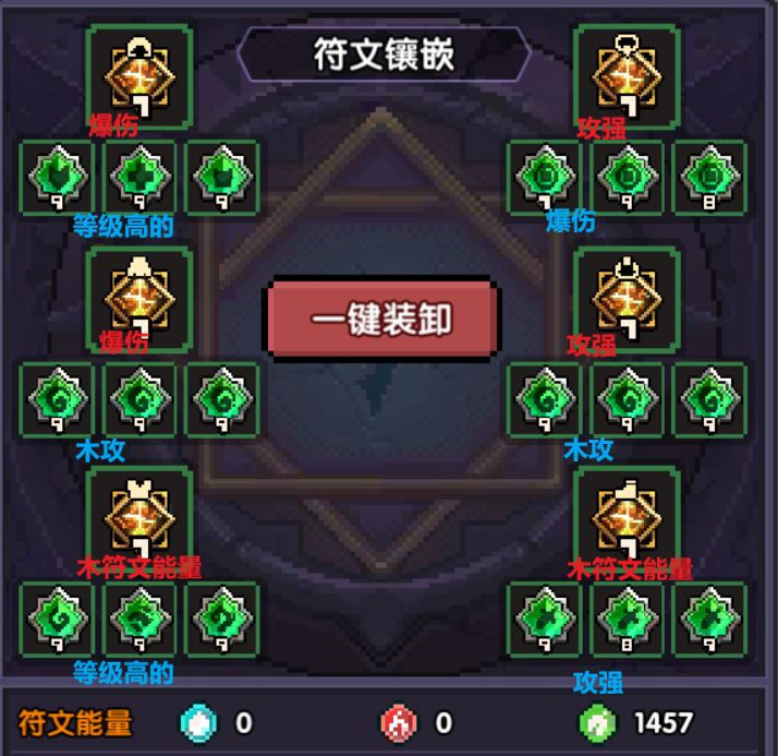 8元素穿透+0攻强+2暴击伤害+8木攻(根据个人面板的不同,会有一个属性左右的浮动,只要相差不大都可以,攻强后期太高了,副属性建议还是不洗攻强)