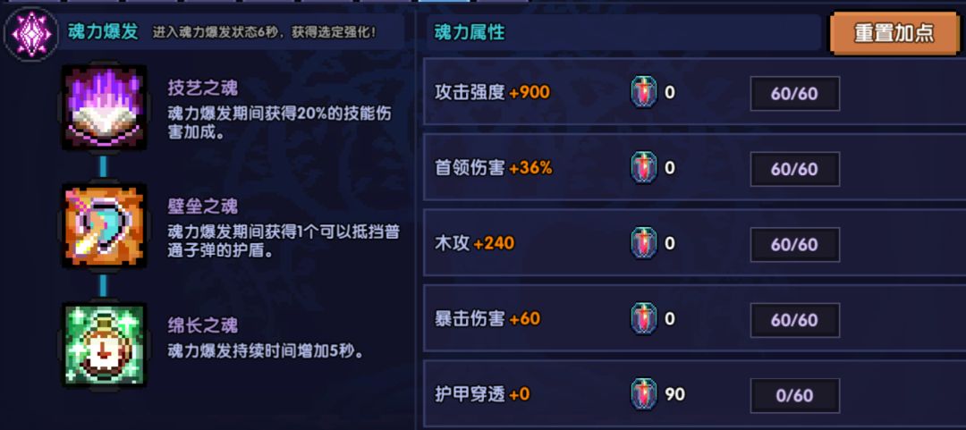 其中魂力属性只需要点攻强、木攻、爆伤和无限攻强,或者根据暴击值情况补暴击,不需要点首领和穿透。
