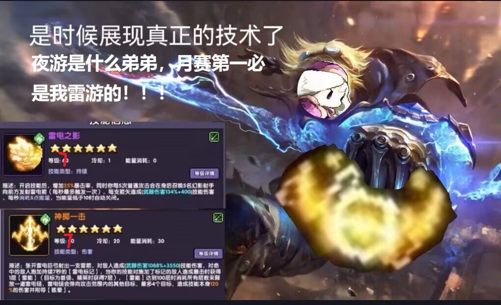 总的来说,雷游竞技场还是非常强势的,由于有了魂珠的感电和技能的眩晕,魂卡可以省去蝙蝠王这个累赘(夜游投向了羡慕的眼光),并且在新木魂系出来之后,雷游的强度会更加上一个档次,月赛表现就可以压过夜游,因此下期月赛游侠榜必然是由雷游拿下的。![[嗒啦啦2_哈哈]](https://img.tapimg.com/market/images/1bbca193685a619674d8260ad0ed7455.gif)
