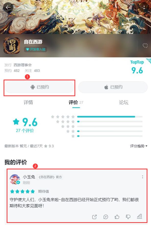 1、预约《自在西游》并在游戏评论区留下评论,截图保存