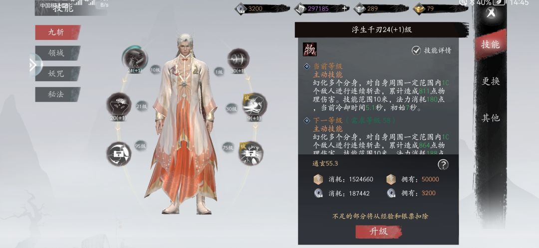 技能升级要的银票太多了,可以改的少点,比如说升级给技能点,一级一个,技能加成好一点