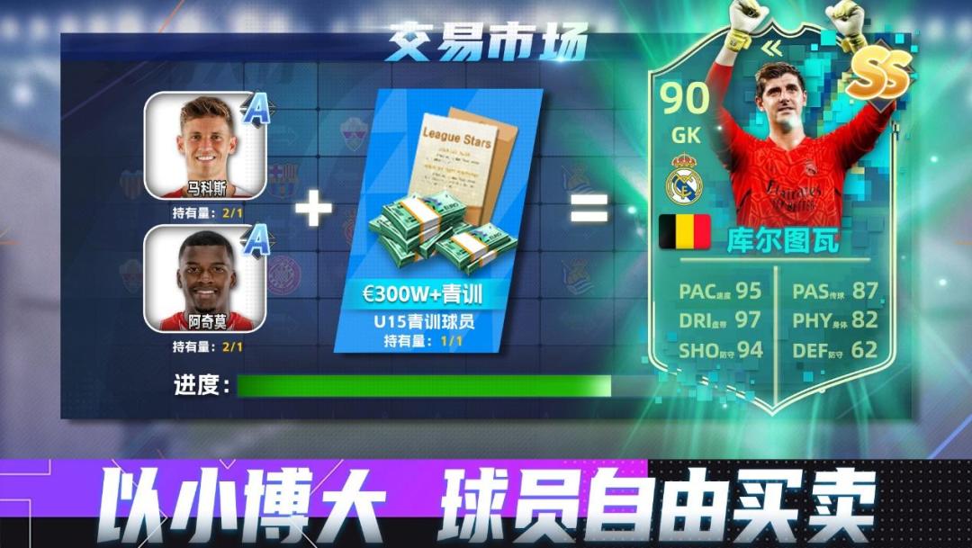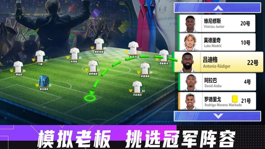 玩家可化身球探,广罗球员,若眼光独到,更能发掘到“天才球员”。若在球员能力值偏低时进行培养,当该球员在现实联赛中发挥优异,游戏中的评分也会相应增加,游戏玩法中也会得到更大的战力反馈。