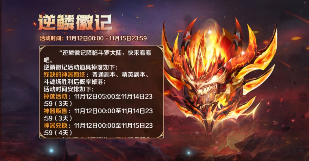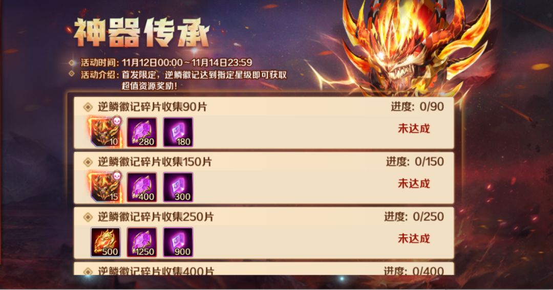 神器传承,升星好礼首发限定活动,逆鳞徽记升星达到指定星级即可获得逆鳞徽记碎片、统领龙核等大量资源回馈!