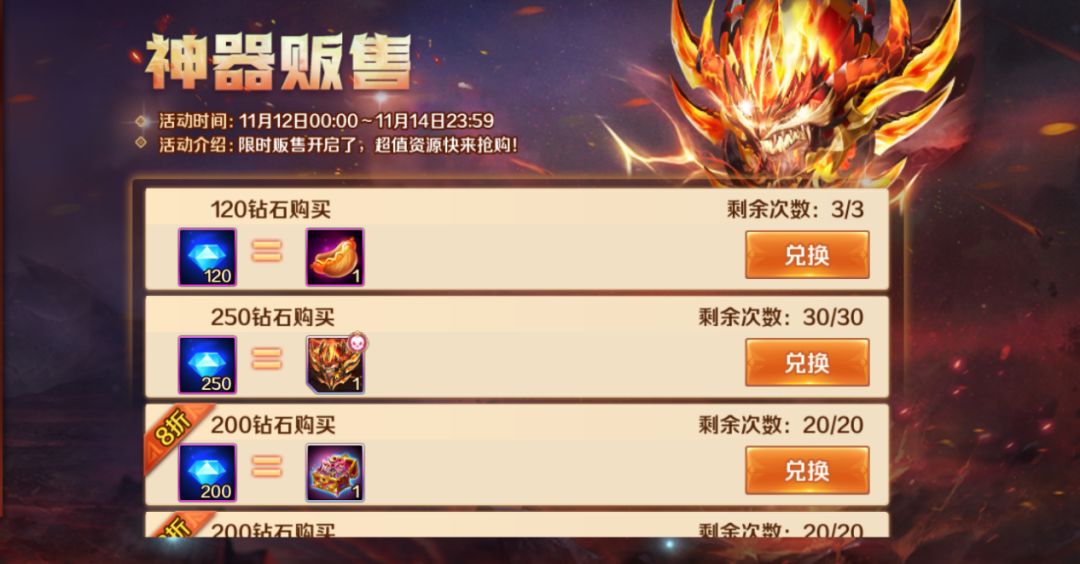 活动时间:11月12日-11月14日(兑换持续到15日)