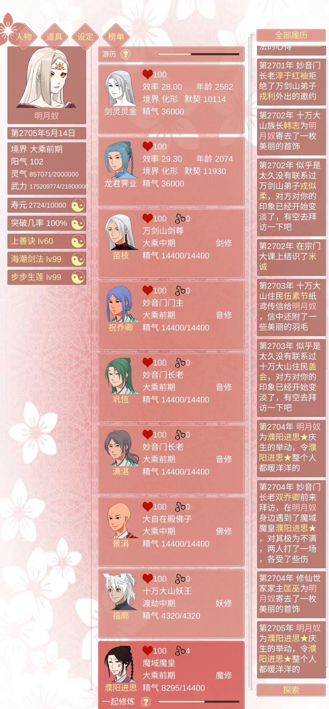 初代魔皇是女的,我喂药让她飞升走了,剩下的就是替补上位,可惜质量也不高。再来再喂,直到出现了新人物。