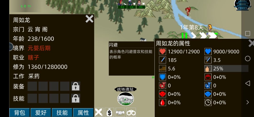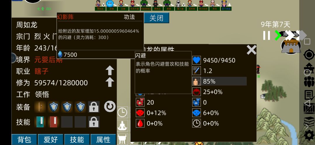 外面职业显示20%,属性显示25%闪避【那我+阵法15%闪避+装备60%闪避】