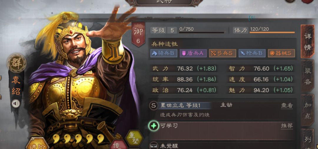 袁绍就复杂多了,加武力、加智力、加统帅、还有人加速度,也有人速度、统帅各一半,或武力、速度各一半。