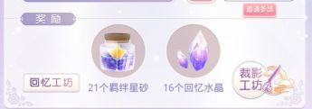 参与凝砂之战可获得羁绊星砂以及回忆水晶。