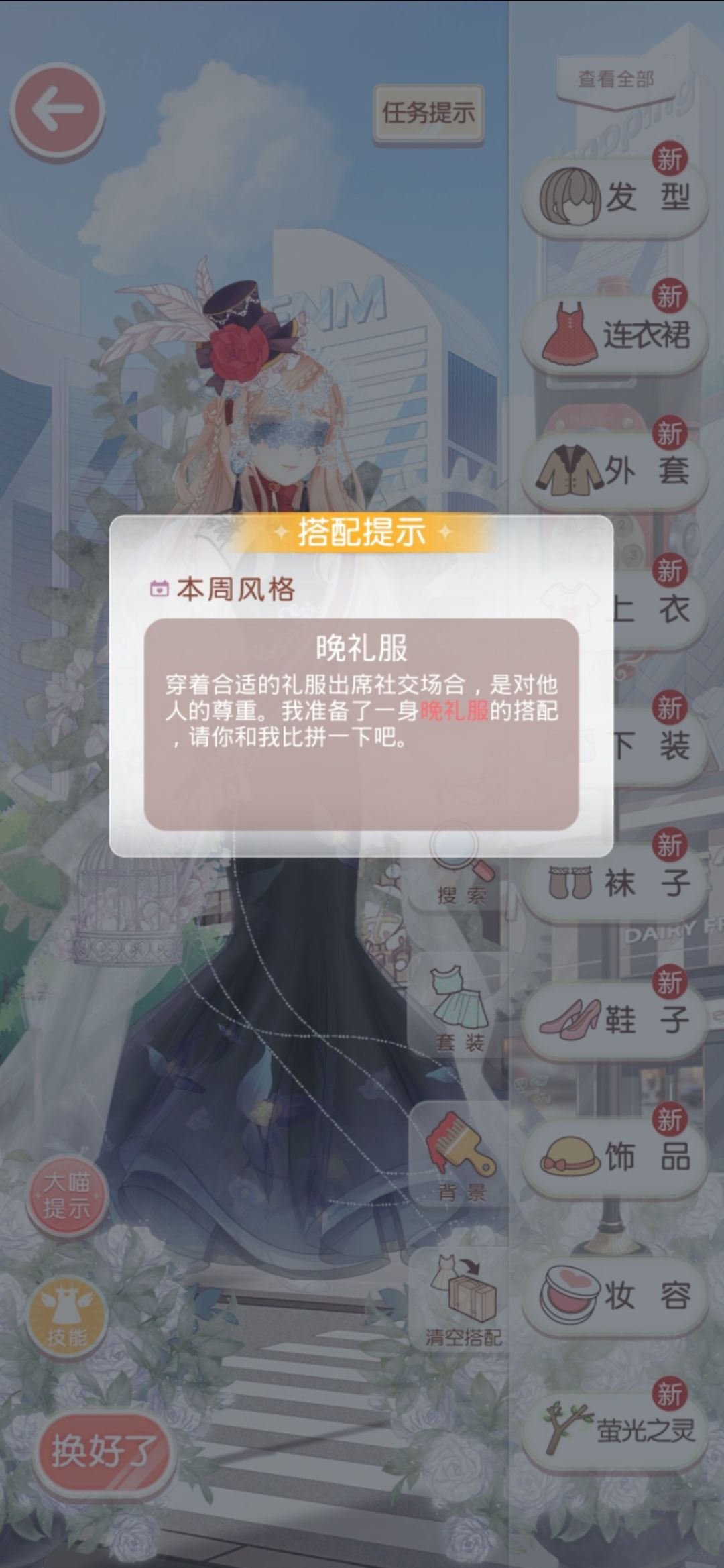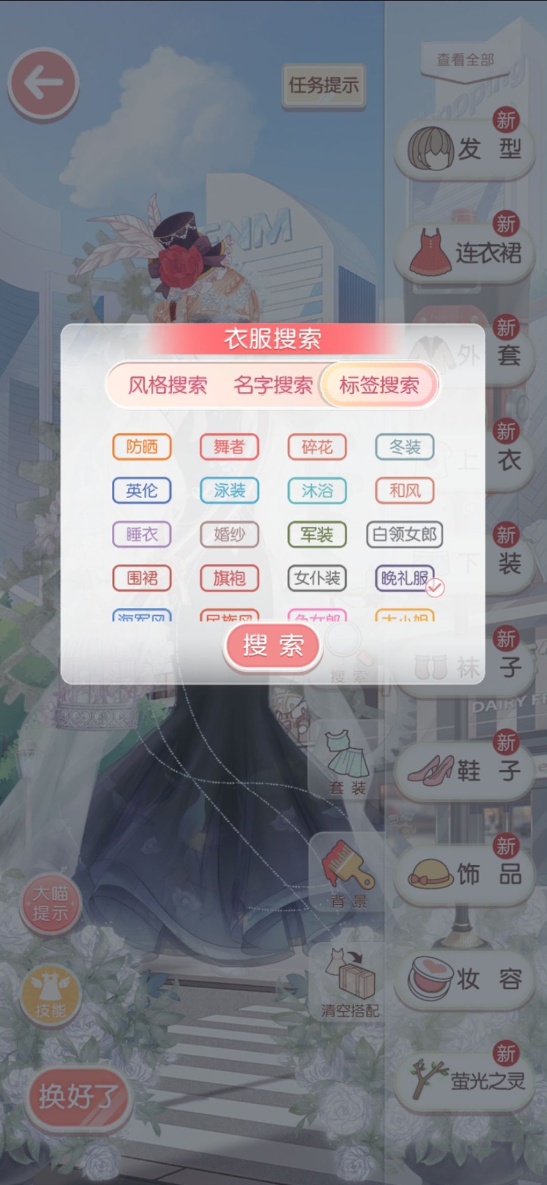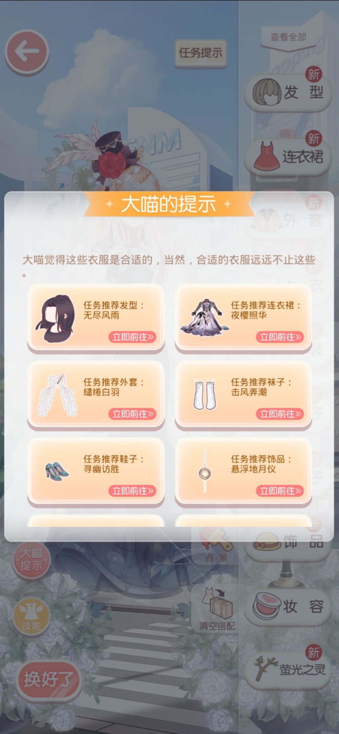 我们先在预设搭配中根据风格提示,选择合适的服装。