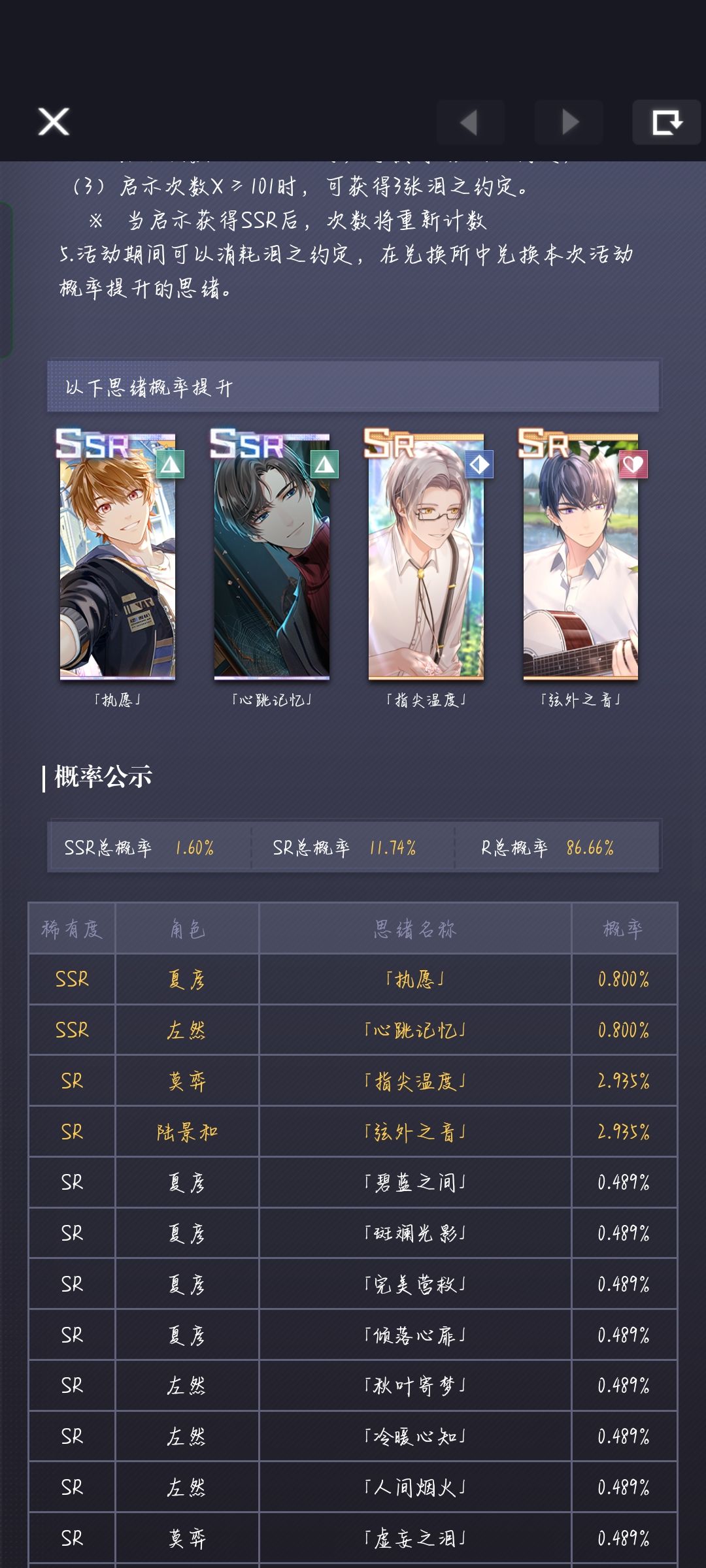 听我说谢谢你!真的快被抽干了,一大三小号,没一个抽中的,不知道是不是复刻的太非,1%的概率还不如轮替0.8%的概率并且还是单抽,我要去拿下暗扣了,你……下次再约吧,心累