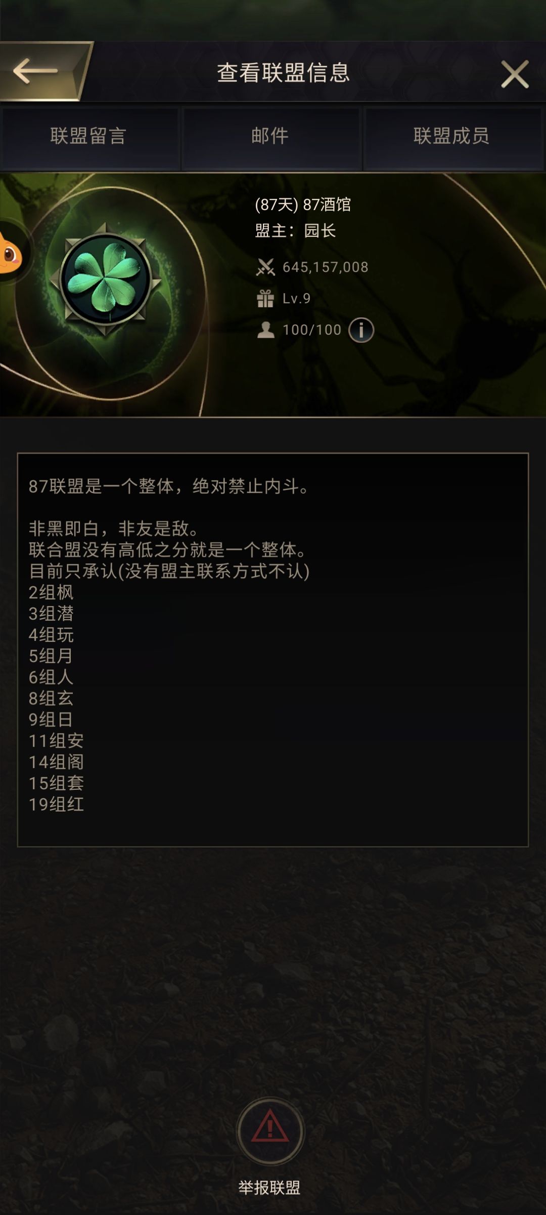 2,图二是87区所谓的联合盟,所有不带87开头都是敌人,但是问题来了 为什么这么多盟一的人打了87同盟其他盟的人,道个歉就完事了?这不是一例