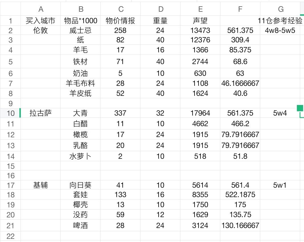 路线千变万化,城不变,尽可能卖绿,不要半仓跑。有钱按经验多少投资,公会可以选小势力或者欧洲城多的
