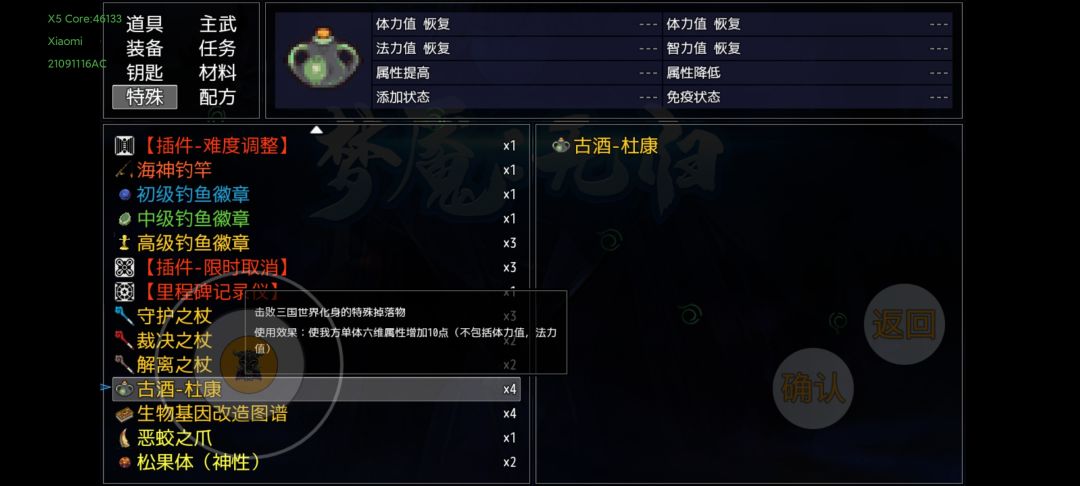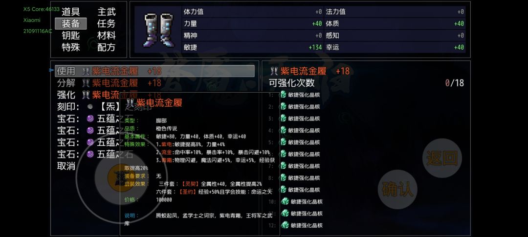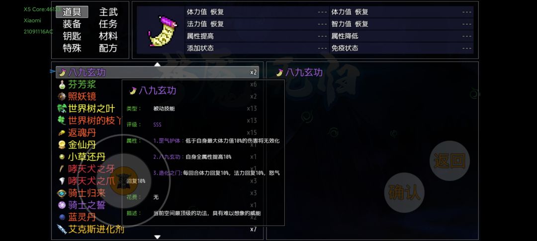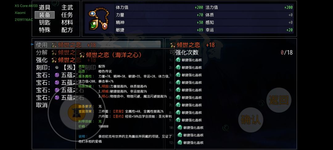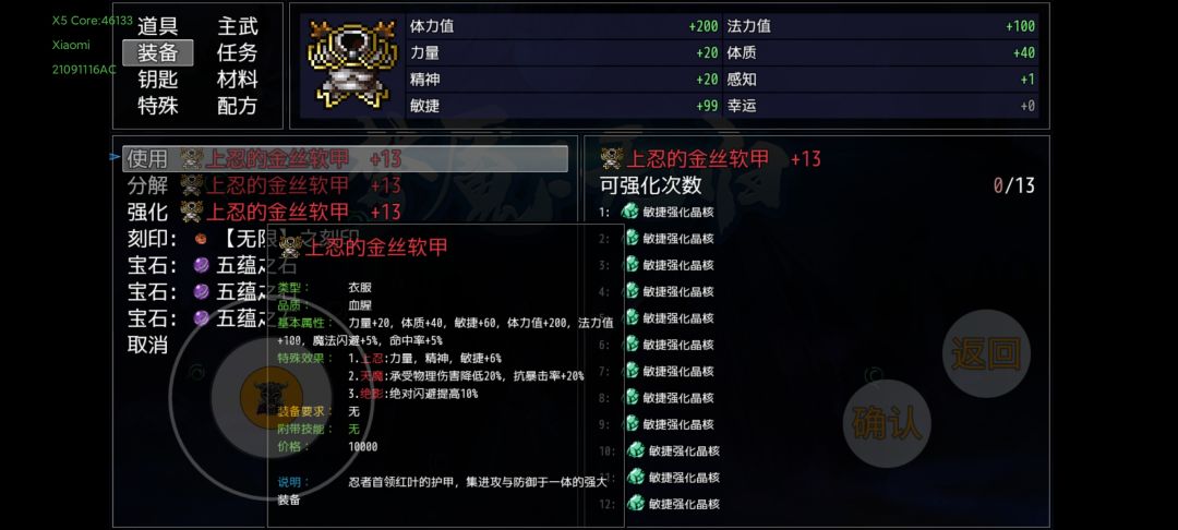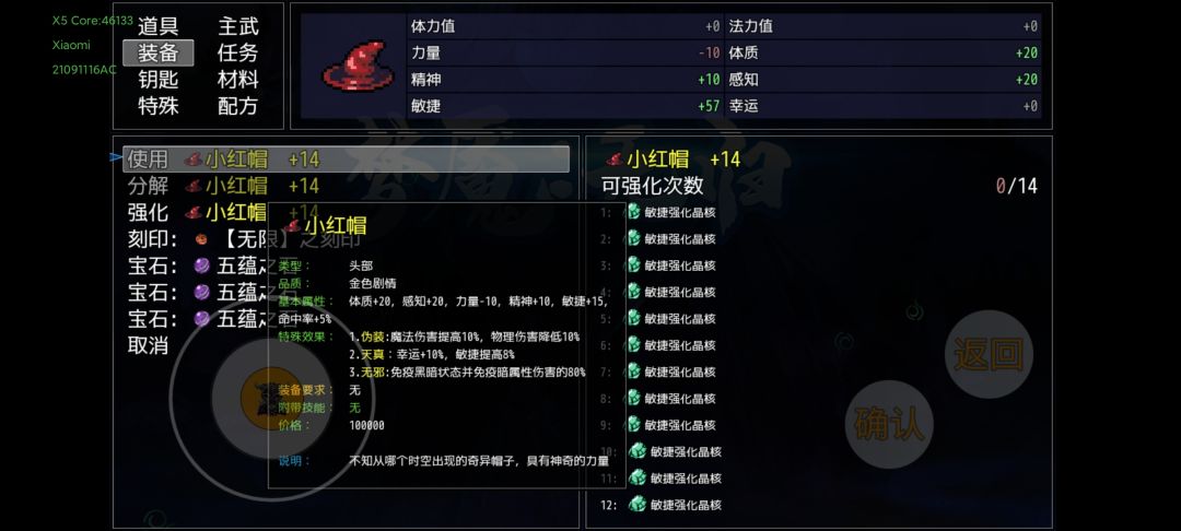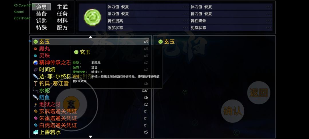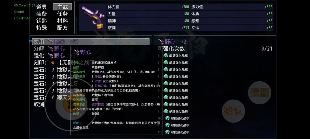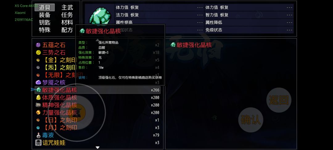 上述装备准备完,并且通关第十幕,应该就是这个属性。虽然一针不打,但是还是要吃一些平时剧情任务给的道具,到7600敏捷左右就可以超速面具人,下面说一下吃了的道具。
