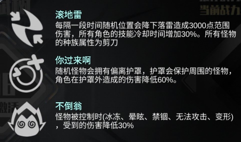 剪刀属性怪适合锤系主C上场。第一个和第二个因子对生存要求较大,注意走位或上场一些提高生存能力的角色,尽量在圈内输出,而没有冷却技能的角色更是吃香;第三个因子不必太在意。