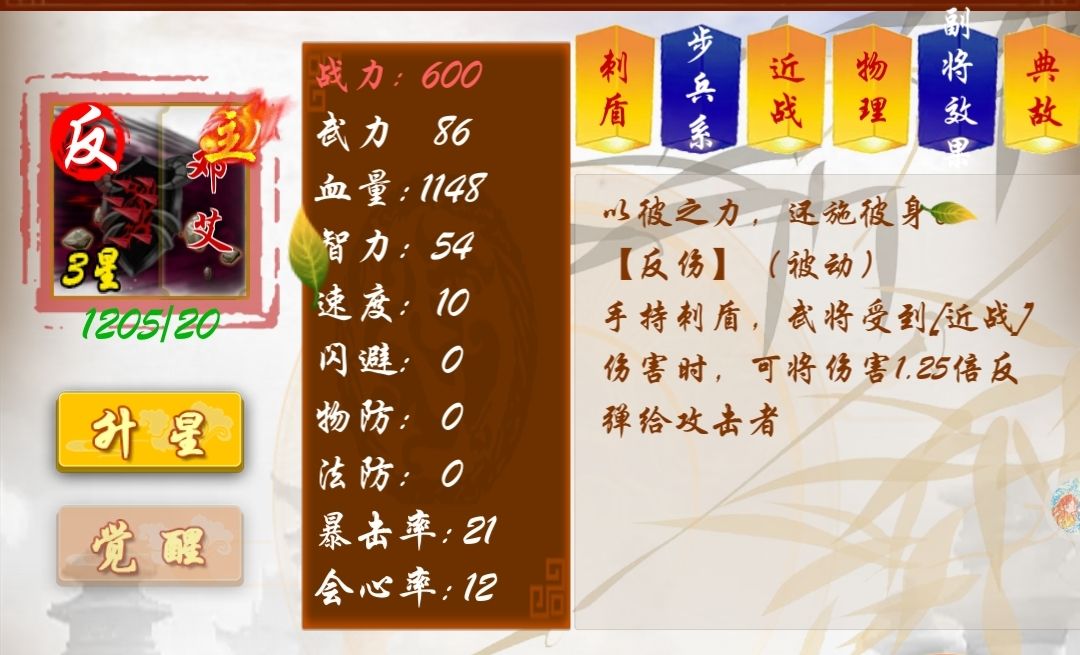 但是这个技能讲解,反甲,应该不是按自己的武力反伤。