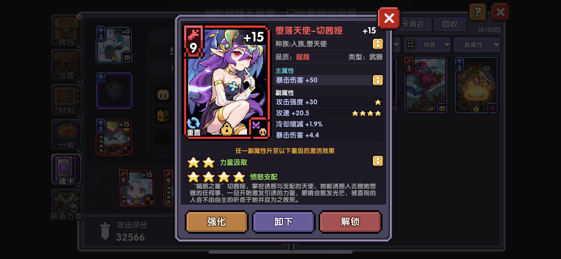 今天早上赌卡出了个芙法,虽然歪到攻击上了,单爆也凑合用吧,昨天赌成了个牛,算上这几天赌卡,加上拉商城的直升15包,花了90张双十一票子,3400钻石,切西亚是用四连卡上的,随便歪哪一个都行,偏偏歪到了神蔑牧最用不上的攻速,我已经麻了,十张老虎卡就出了两张元穿,不出意外的两张全部扑街,至于偶像,吃了我两张重置还是二星,已经不想搞了(ps,准备了20张偶像,爆伤4张,暴击值3张,来回吞没成一个)!!!!最后忠告一下吧,赌卡需谨慎,尤其新号,太影响前期节奏了!现在前十秒猴桩能稳定20多亿了