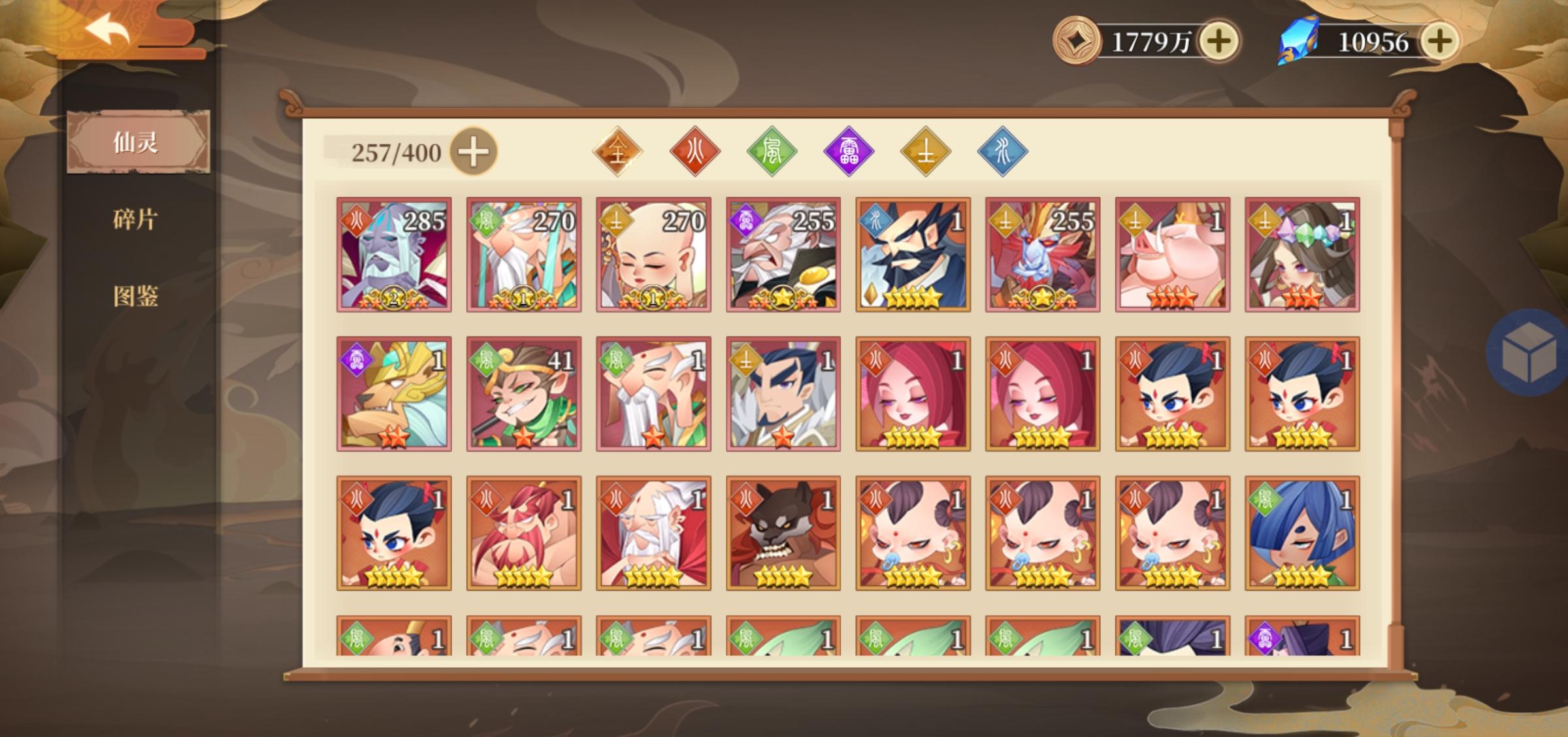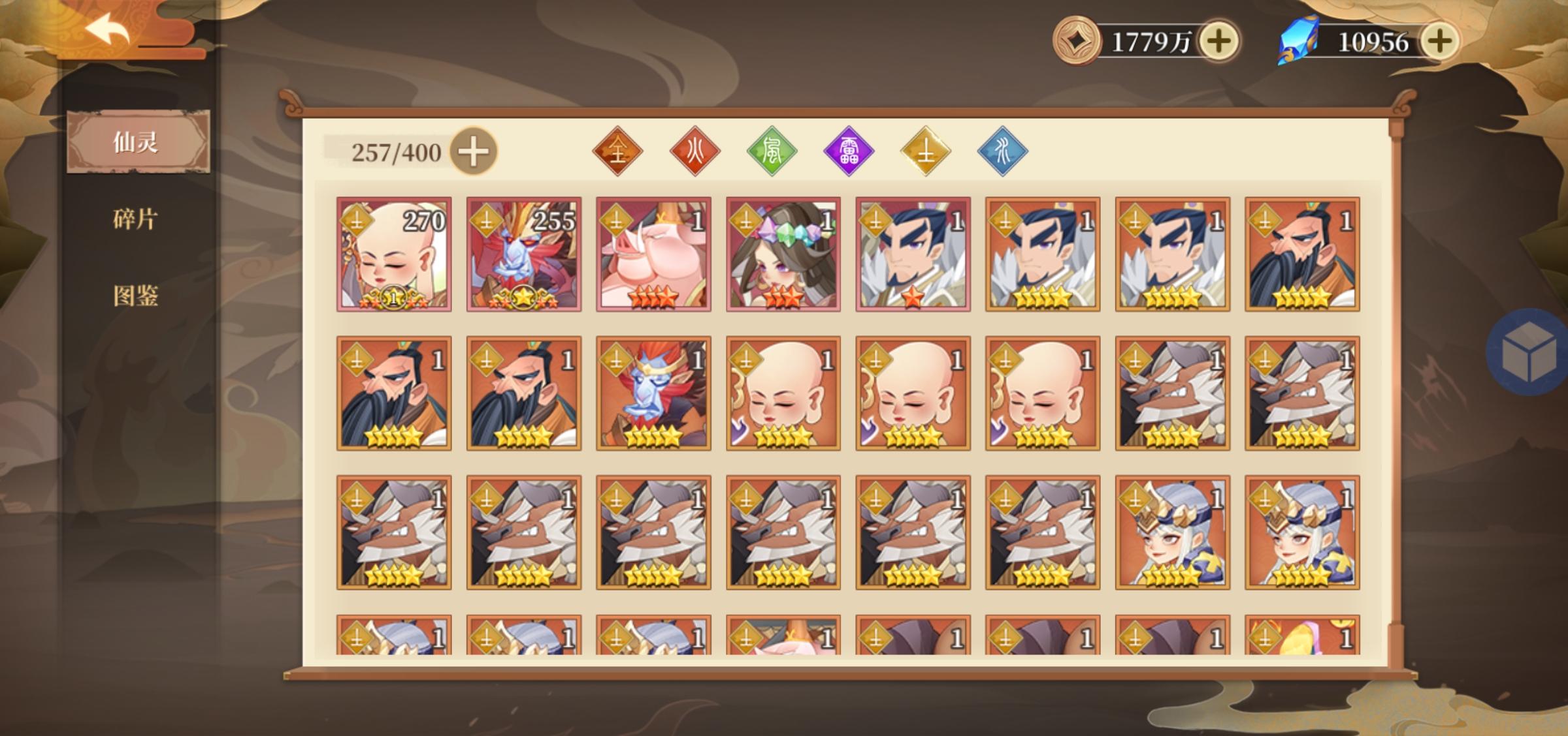 第五周,刚v7,之后不氪了,土猴下周就11。现在有两种发展方向:一是搞普贤和狮子,换广法和地藏,五行一直土,燃灯猴子先上十三,太乙有富裕的就也上十三。这种发展属于比较中庸,普贤和土猴两个月左右成型,狮子就没时间了。