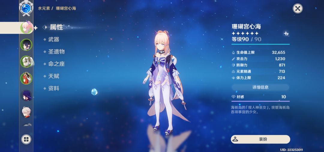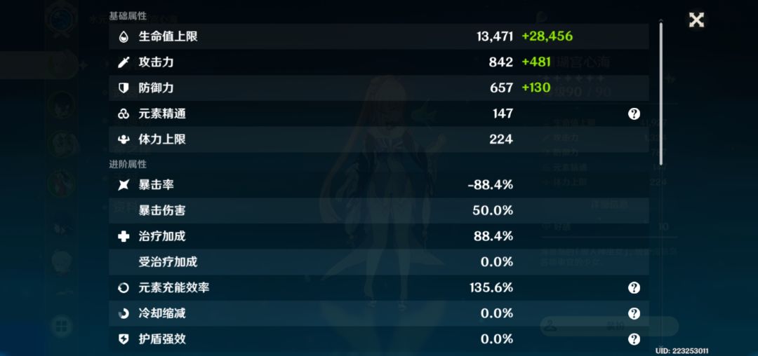 这是心海带的海染套常规水生治专武月华的面板