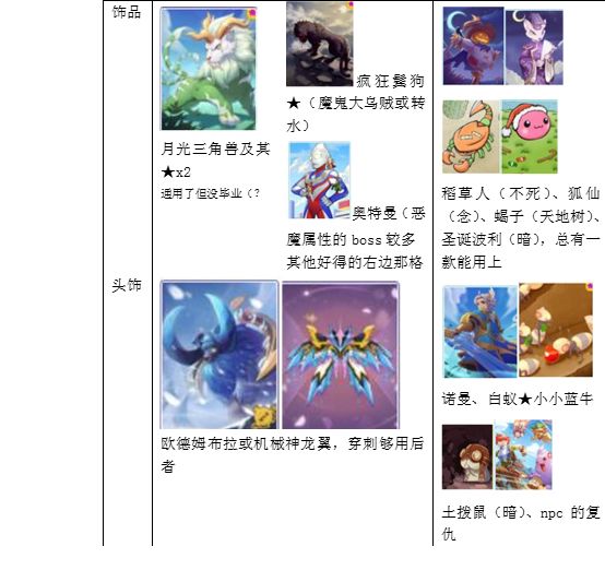 饰品:月光三角兽或其星卡x2或属性增伤卡如圣诞波利稻草人狐仙蝎子等