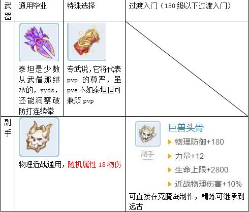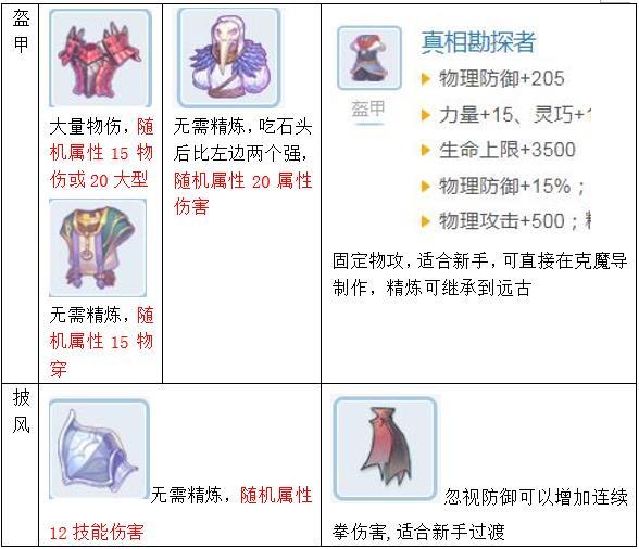 (所有装备推荐为150级副本获取的远古装备,如果短时间到不了150,可去克魔岛制作无随机属性的过渡:勘探者套装(固定物攻加成,对新手很好,只推荐做这个,其他有啥用啥)