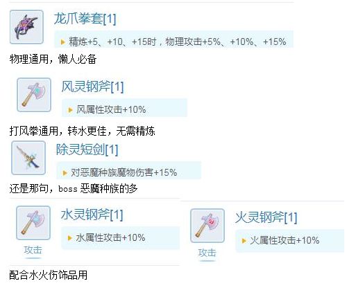(精炼等级仅为指出某些可以0精炼的装备用,不必15也行先全套+10过渡)