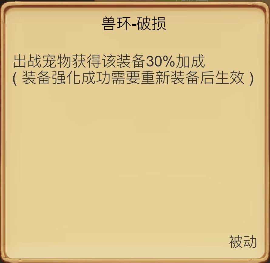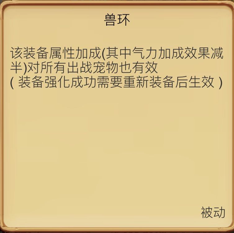 首先最直接的,就是你的项链,有几率赋予的技能,兽环,兽环的好坏,取决于你的百人小黑等级,切记,我们要的是 完整的兽环,而不是 破损的,例如: