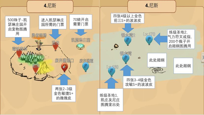 接下来的发展,都是自由选择,没有固定说法,无非就是去刷更好的皮,去练级练宠,去打打材料,在此奉上一张图片,结束这个人经验谈,希望对各位玩家有所帮助。