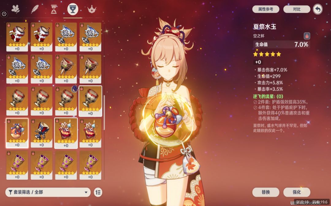(3)这种杯子萌新45级能歪出来的,直接用,作为一种过渡圣遗物来说算是很合格的了。没有对应属性的杯子,大公鸡杯也是可以用的。
