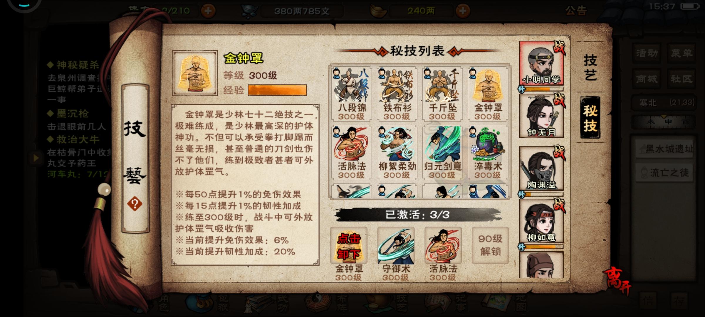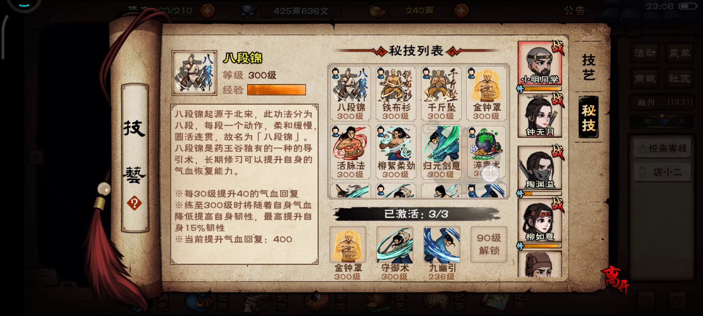 主角镇派轻功最后四重也拿到了,现在可以开始攒贡献换其他秘技了。