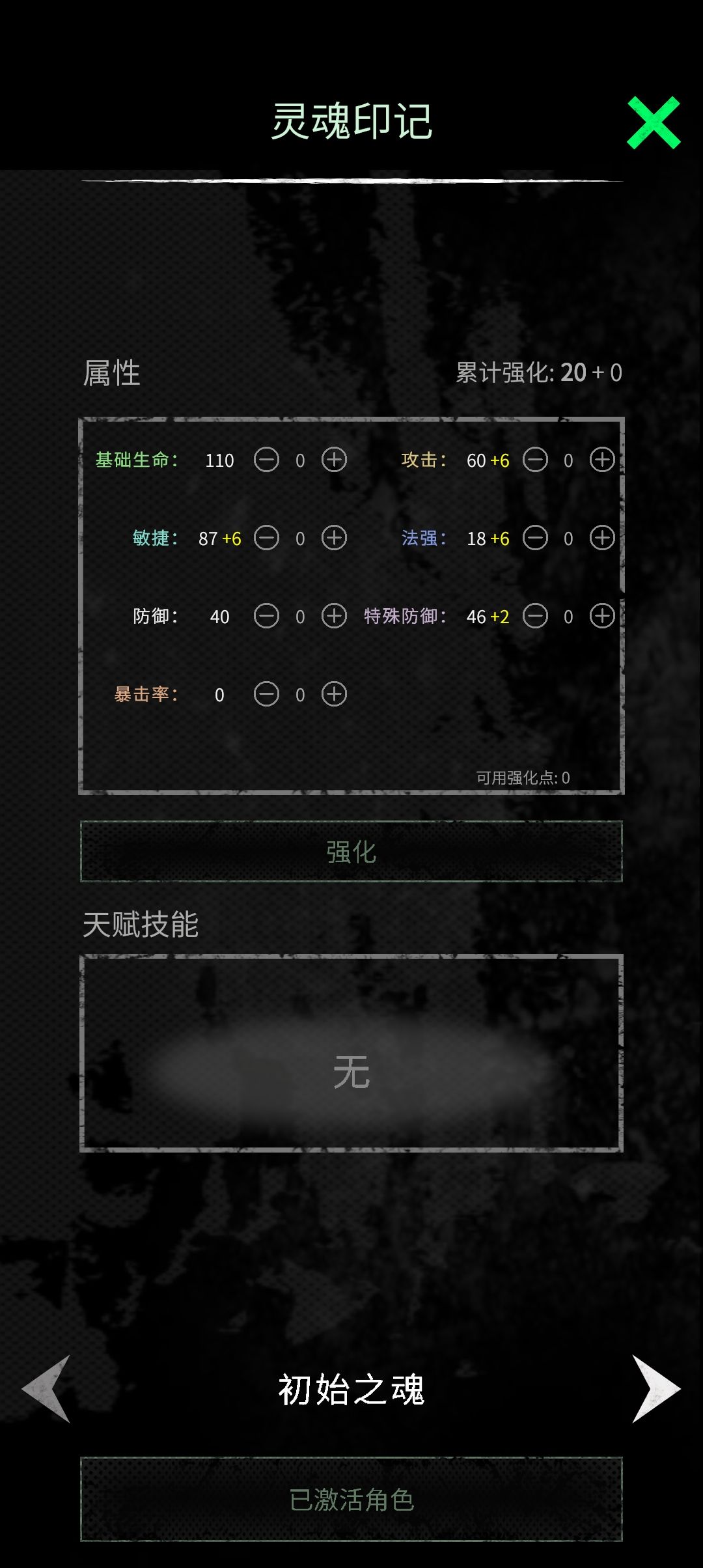 没有天赋技能,防御属性相对后两位为中间值 但初始敏捷和攻击最为出众的初魂。