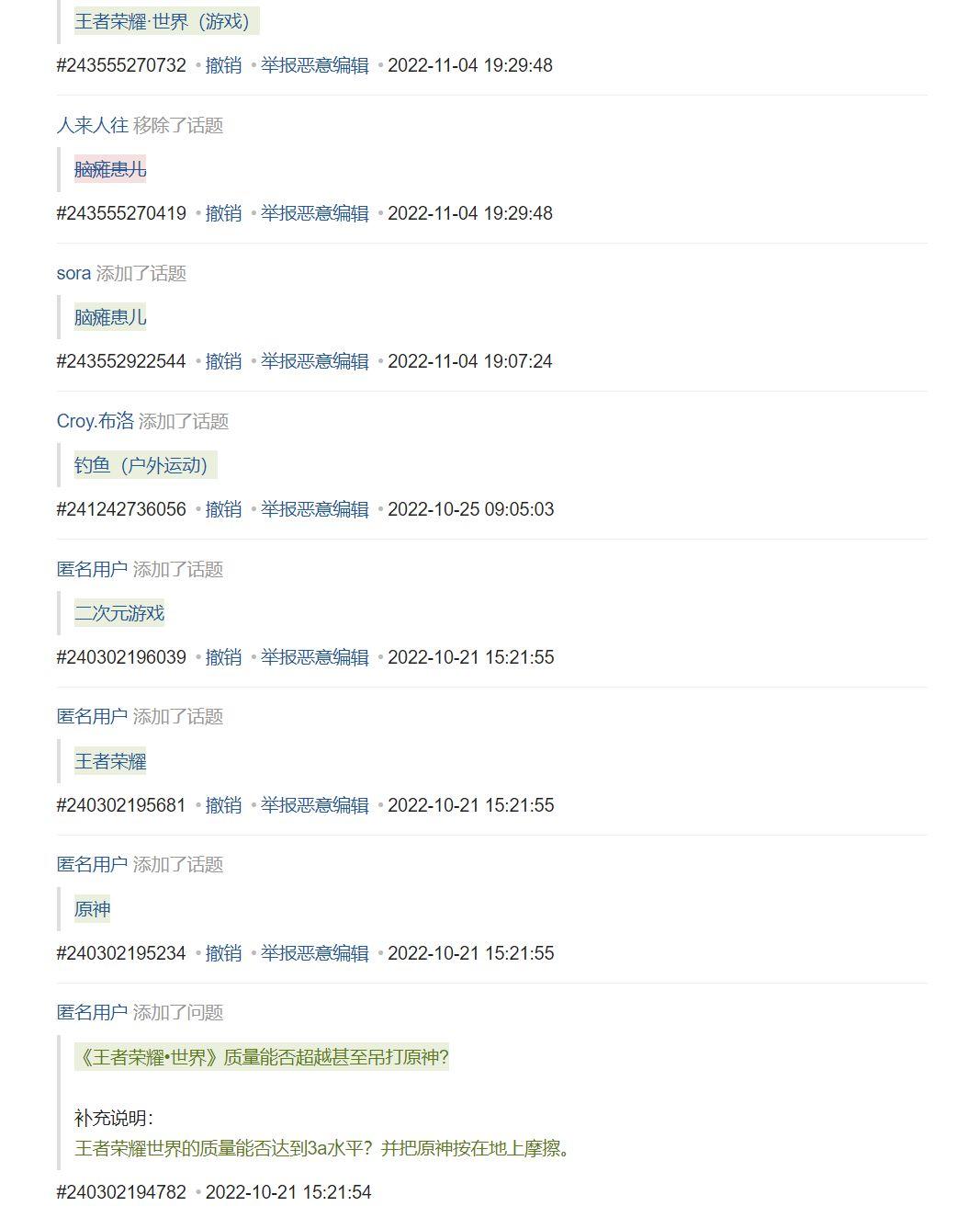 哈哈哈哈知乎上一个关于王者荣耀世界的一个问题挺有意思,看问题的编辑日志,一开始把原神扯进来了哈哈哈