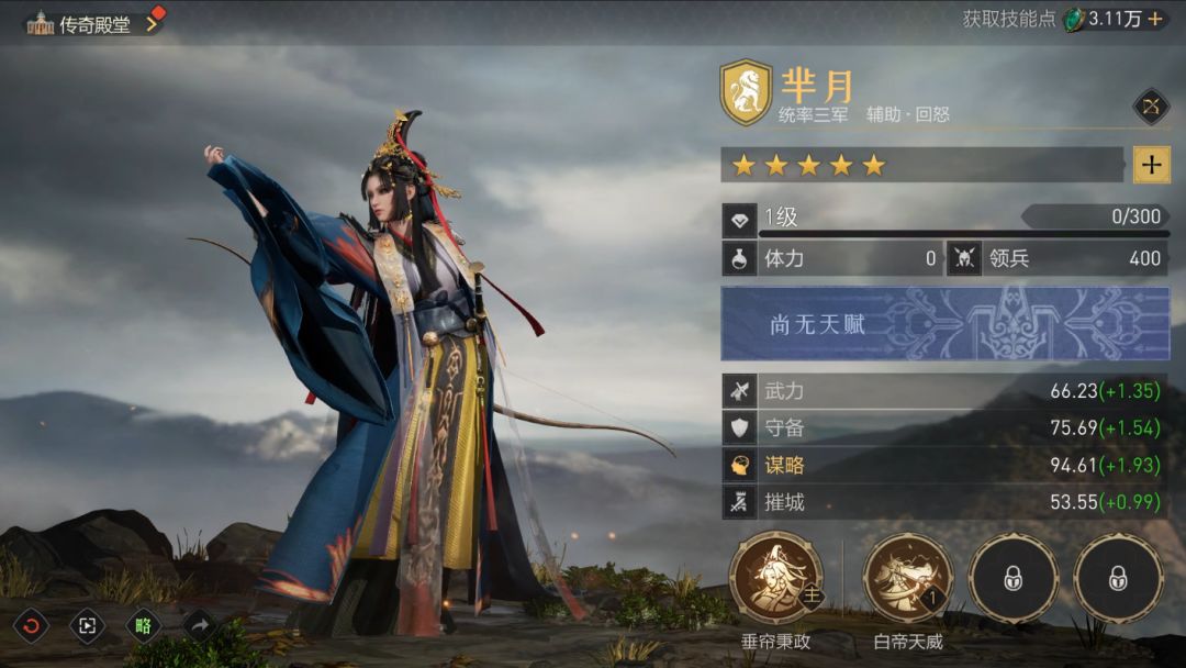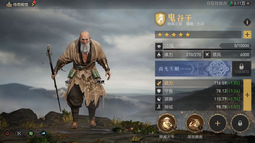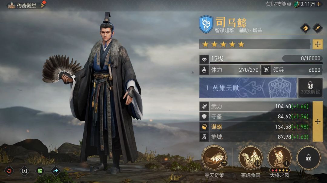 回复高、坦度高,这也算是基础吧,要尽可能的降低战损,从而降低初期粮食田数量,输出够看就好;