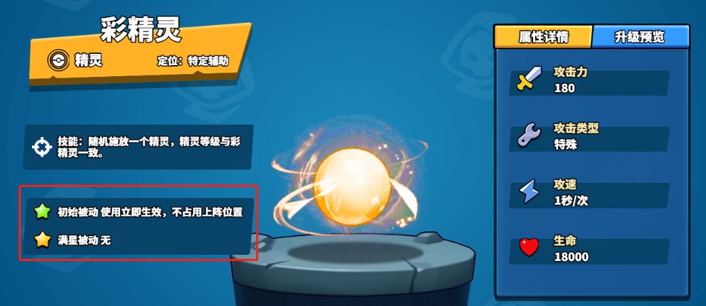 最后是精灵界的“奇葩”彩精灵,它的技能是随机施放一个精灵,精灵等级与彩精灵一致,因此也需要彩精灵极高的等级才能发挥其强大的潜能。