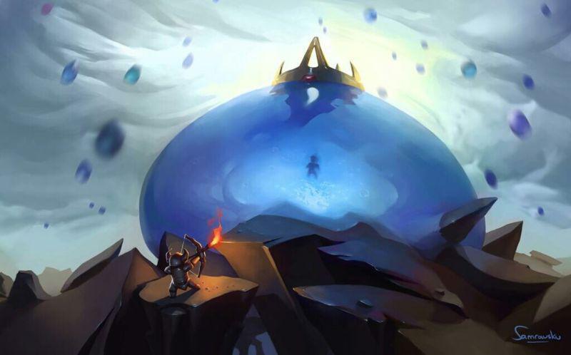 没啥好讲的,注意史莱姆王传到自己头上的别打就行,因为可能会生成尖刺史莱姆把你打下去,手榴弹也容易炸到自己。