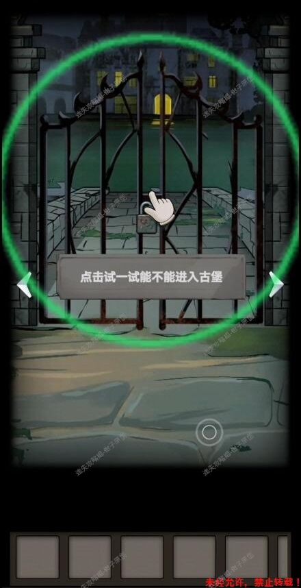 1.按照新手教程打开古堡大门,进入前院。1