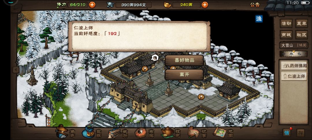 经过我持续不段的送药,大招寺总算是要被我征服了。(200好感就可以不送了)