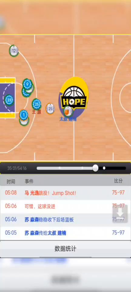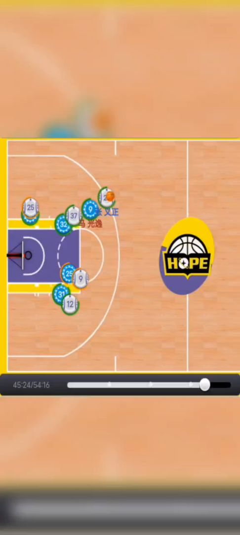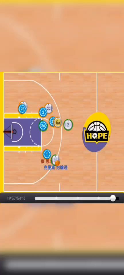 前面没截到。。这球是防守成功后,8号(C)拿到篮板,将球给到了2号(PG),而PG没有选择自己推进,直接将球给到了35号(SG),35号持球待8号落位至油漆区后,将球给到8号(C),这一个传球吸引了对方2号球员的协防,而这个协防暴露了我方22号(SF)的空位,8号将球给到22号三分出手造成犯规