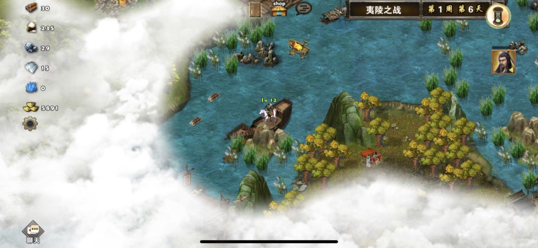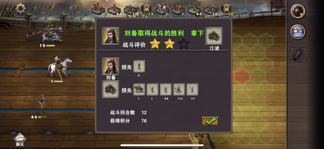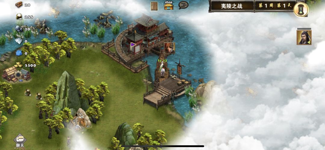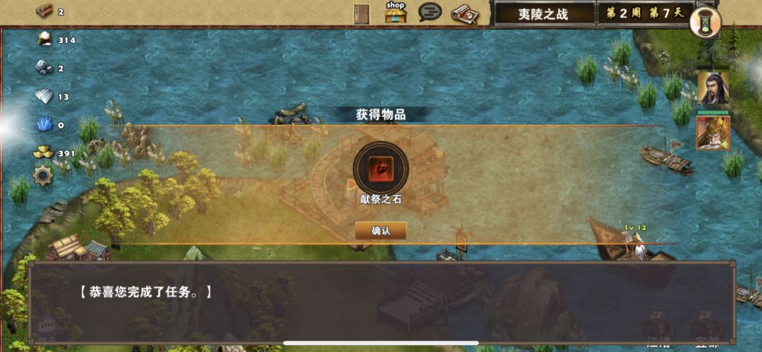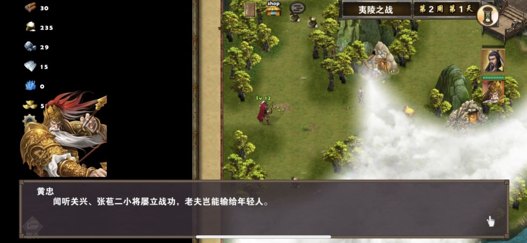 2周1黄忠出现,刘备换上战斗装备准备去打宜都,黄忠往码头移动,2周2打下宜都后,升级靶场,