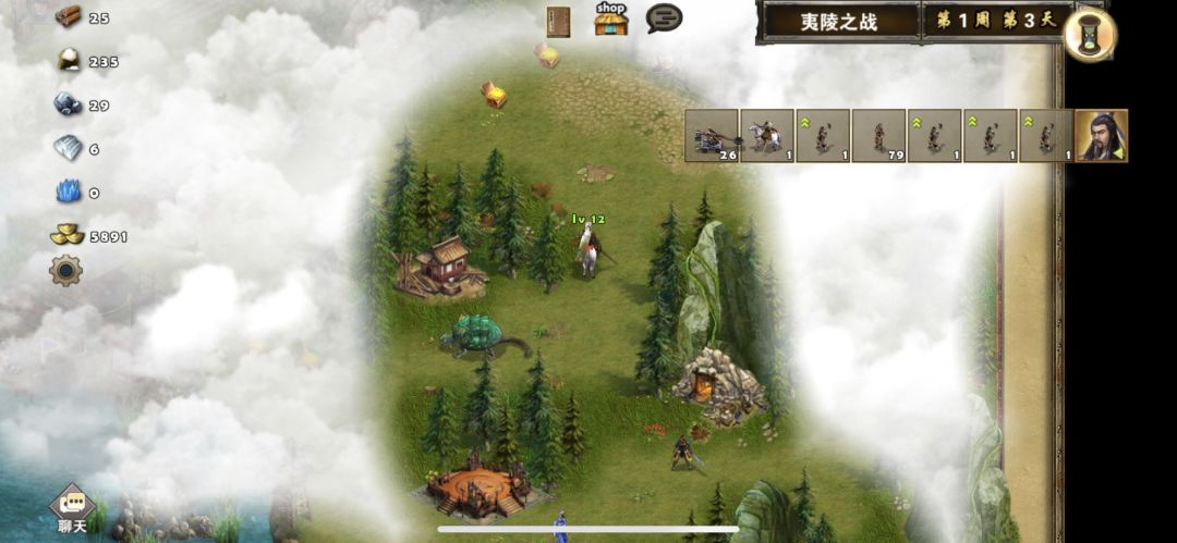 第三天刘备上岸在村落招募4名农民分四组,然后往范疆兵站移动