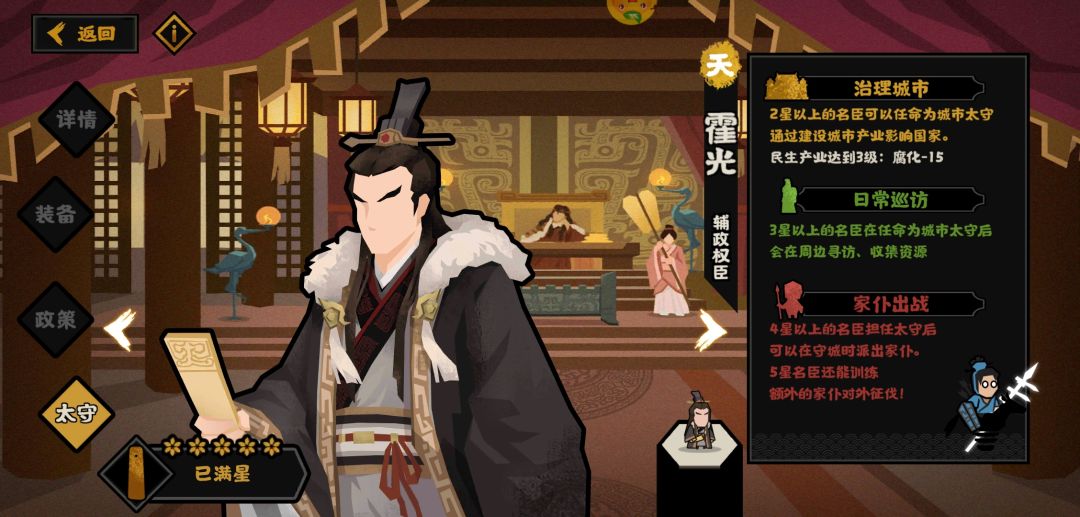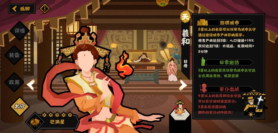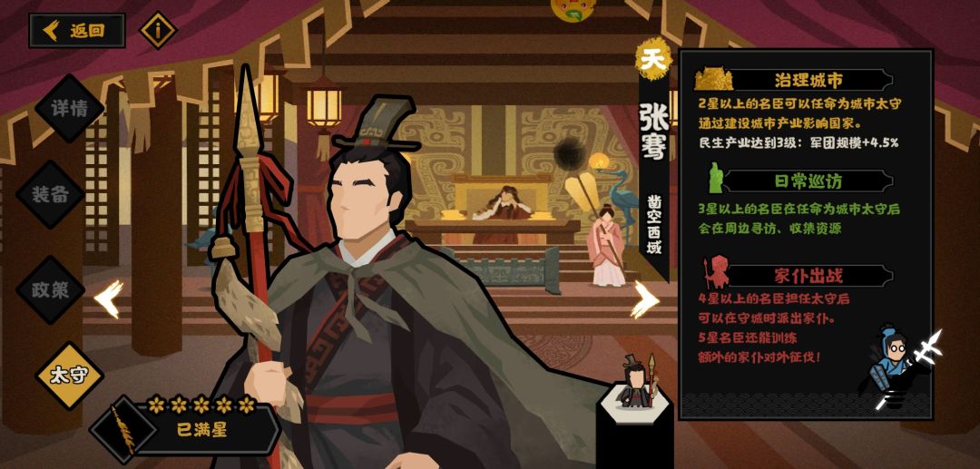 部分天级名臣满装备等级下太守效果