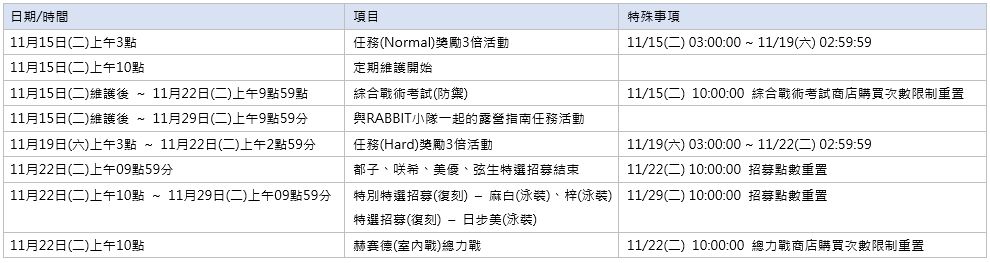 * 任務Normal獎勵3倍活動期間:11月15日(二)上午4點 ~ 11月19日(六)上午2點59分