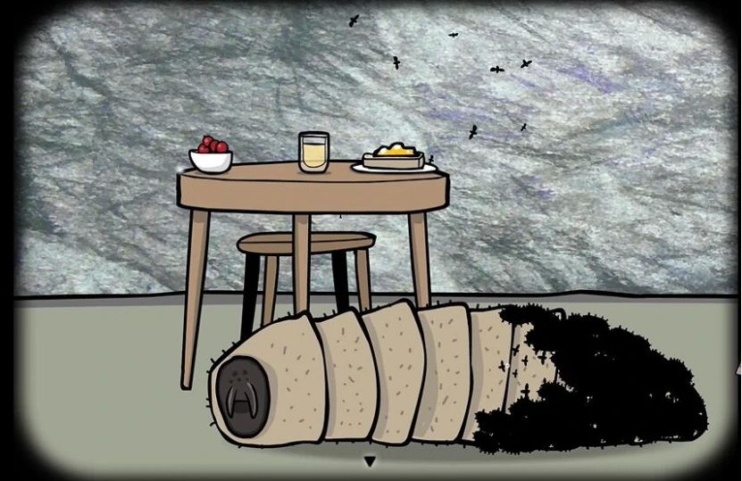 类似骇人听闻的桥段在《锈湖》中比比皆是:剪头发不小心将耳朵给割掉;把耳朵拿给捕蝇草;在粪坑翻弄寻找关键道具······