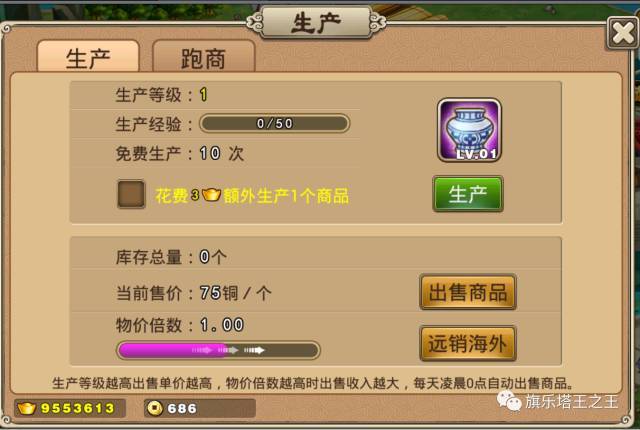 1. 每次生产的时候都会获得商品和生产经验,玩家可以通过出售商品获得铜币,出售商品分别有:出售商品和远销海外,下面跟大家分别介绍2者的区别: