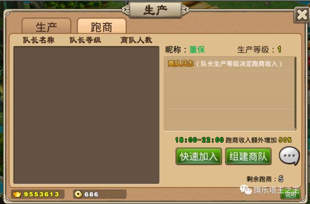 1. 跑商这个功能是为了让玩家有更多的交流,每次跑商都需要3位玩家一起组队后才能玩。