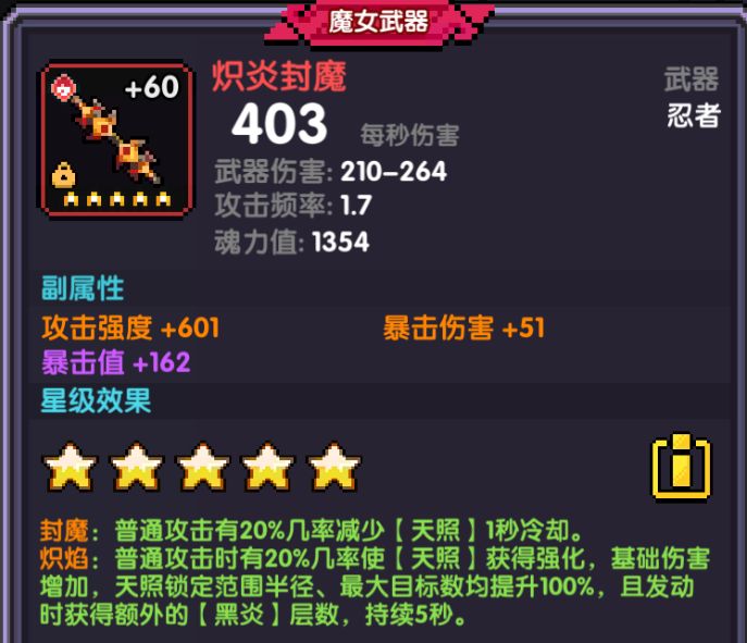 炽炎封魔:暴击、爆伤、攻强/火攻