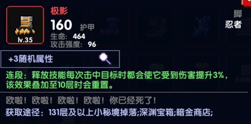 外装推荐二阶外装,技能等级一方面,相比一阶外装还多出好多副属性,能凑的尽量凑二阶,影子忍者紫色技能以及橙色技能都为伤害占比技能,因此技能等级相比其他职业可以说是成为双倍收益,外装强烈推荐二阶外装