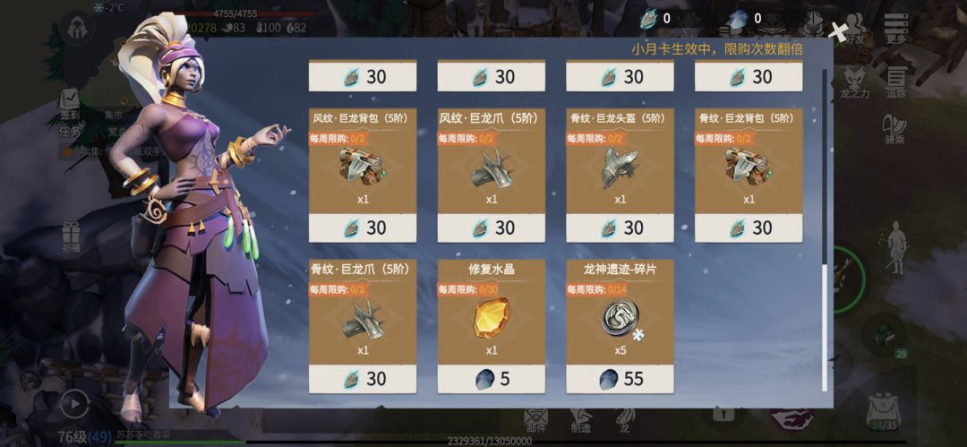 第二名 两件极龙装箱子 200个龙纹石 220个秘之晶石