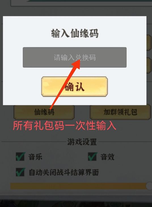 进入游戏之前可以输入一个结缘码有奖励,进入游戏后跟着引导做一些任务熟悉一下玩法,然后可以加群领取礼包码获得不少资源(方法:点头像,再点仙缘码,最后全部输入就行)